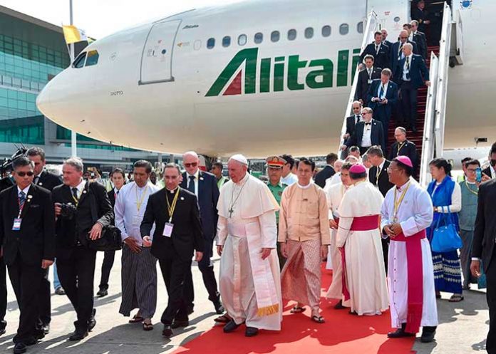 El papa inició hoy en Birmania una breve gira asiática que le llevará el jueves a Bangladesh, por lo que muchos de sus actos estarán marcados por la crisis rohinyá.