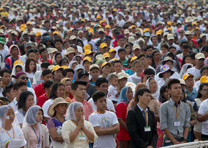 Las autoridades locales estimaron que unas 150.000 personas asistieron al Campo Kyaikkasan de Rangún para la misa, pero la multitud parecía mucho más grande. Los católicos tuvieron que inscribirse en sus iglesias locales para poder ingresar al evento, y muchos de ellos acudieron vestidos con ropas similares o con sombreros con la imagen del pontífice.