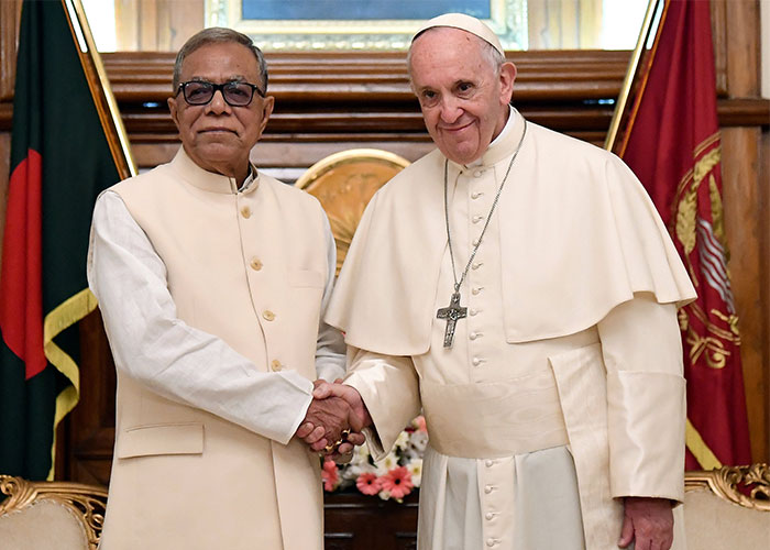 Francisco llegó hoy a Bangladesh en una visita oficial de tres días procedente de Birmania donde, a diferencia de ocasiones pasadas desde el Vaticano, evitó referirse explícitamente a los rohinyá para evitar algún tipo de represalia contra la minoría católica del país.