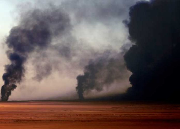 Según un nuevo informe de la organización holandesa de paz PAX, "Vivir bajo un cielo negro", los meses de quema de pozos de petróleo dejaron un paisaje ennegrecido y los grandes derrames de petróleo contaminaron tierras agrícolas y ríos.