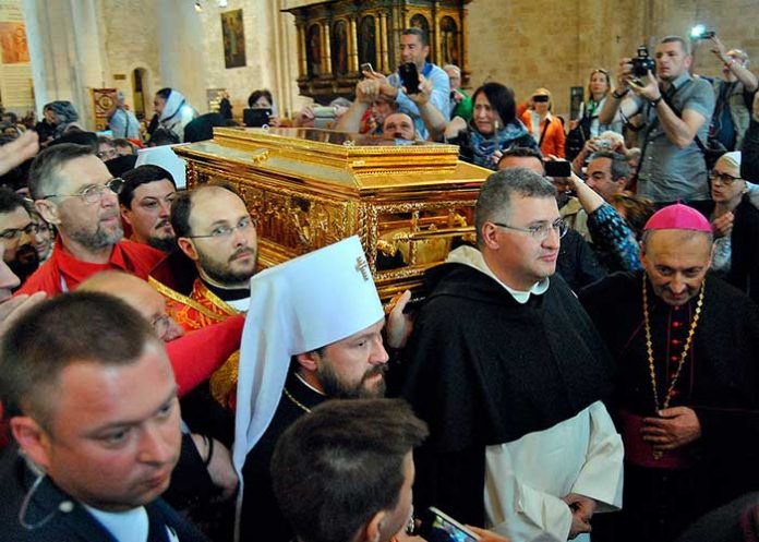 Siglos después de su muerte en Mira, los restos de San Nicolás fueron trasladados a Bari por unos marineros italianos.