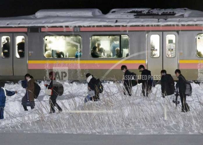 TOKIO (AP) — Unas 430 personas pasaron la noche del jueves en un tren debido a que quedó varado por la nieve que cubrió gran parte de la costa occidental de Japón, informó un funcionario ferroviario.