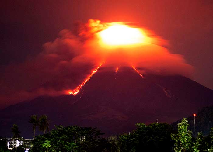 El Mayón se ubica en la provincia de Albay, a unos 340 kilómetros (210 millas) al sureste de Manila. Con su cono casi perfecto, es popular entre alpinistas y turistas, pero ascenderlo es riesgoso: ha hecho erupción unas 50 ocasiones en los últimos 500 años, a veces en forma violenta.