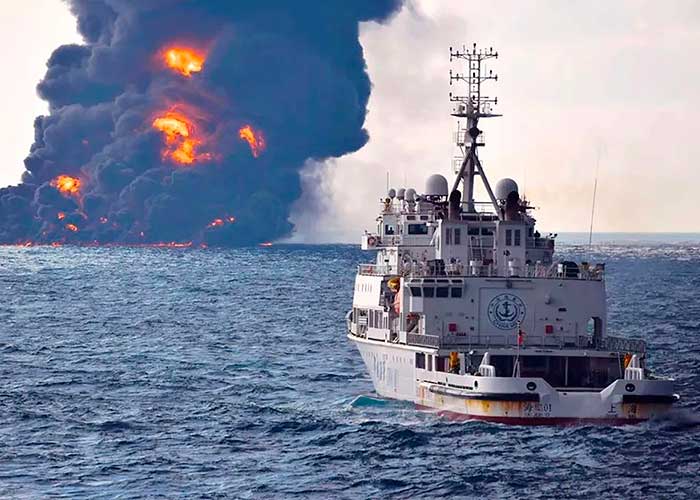 El Sanchi, un petrolero iraní registrado en Panamá, explotó y se hundió el pasado domingo por la tarde, ocho días después de colisionar contra el mercante CF Crystal, de bandera hongkonesa, a unas 160 millas náuticas (300 kilómetros) al este del estuario del río Yangtze, junto a la ciudad de Shanghái.