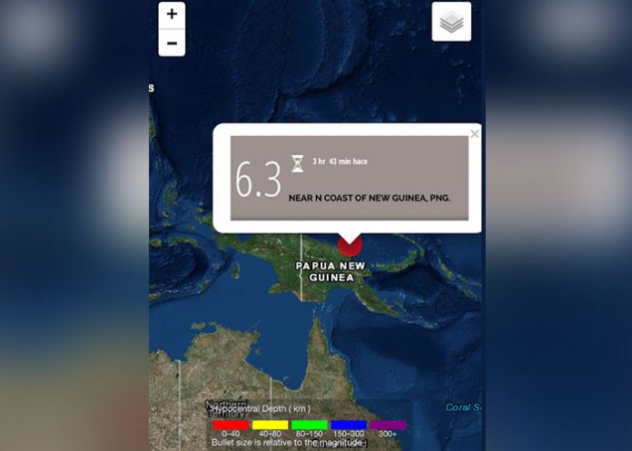 Bangkok, 27 ene (EFE).- Un terremoto de magnitud 6,3 sacudió hoy el norte de Papúa Nueva Guinea, sin que las autoridades informaran inicialmente de daños o víctimas ni se alertara de peligro de tsunami.
