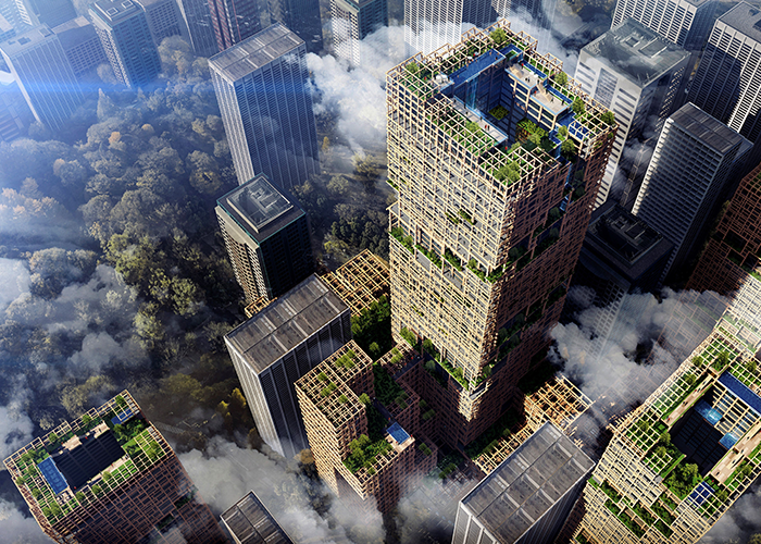 Con el nombre de W350, que se construiría en centro de Tokio, incorporará una estructura combinada de metal y madera, constituyendo esta última el 90 por ciento de sus recursos, así como diferentes tipos de plantas, que treparán a través de la misma y le darán un aspecto más natural.