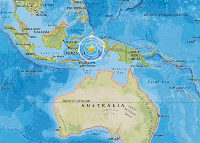 El epicentro del sismo fue localizado a 1,9 kilómetros de profundidad y a 44 kilómetros al noreste de la localidad de Airbuaya, en el archipiélago de las islas Molucas.