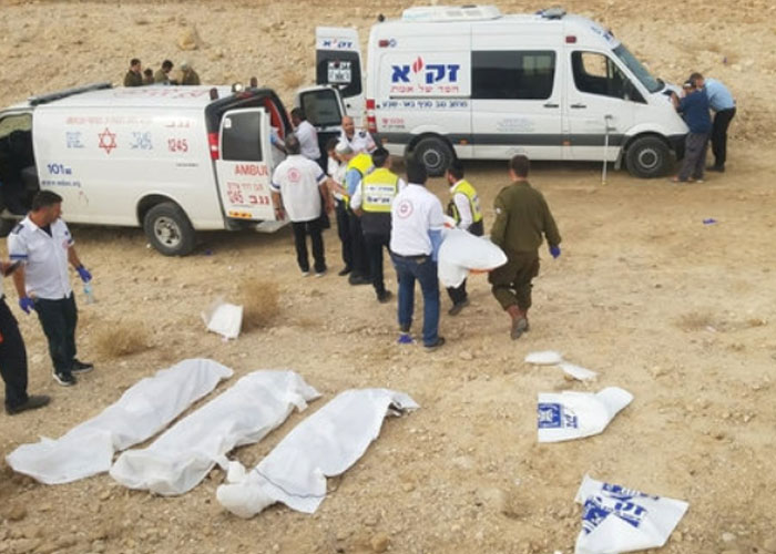 Los nueve fallecidos, ocho chicas y un chico, formaban parte de un grupo de veinticinco estudiantes de una academia de preparación militar que viajaban en un autobús por las cercanías del río Tzafit, cerca del mar Muerto.