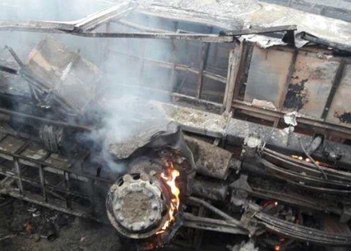 El colectivo se incendió después de la colisión que se generó en la carretera nacional número 28, cerca de la aldea Belwa, en el estado de Bihar.