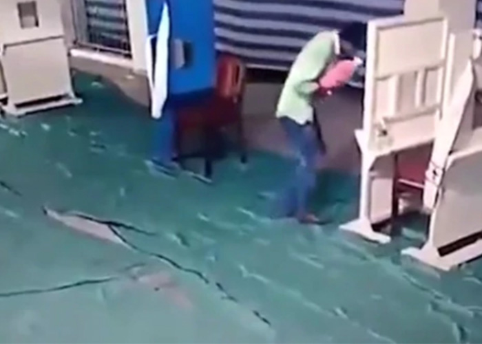 Un video registrado con una cámara de seguridad muestra al padre besando la cabeza del niño. Tras apoyarlo en el suelo, se fue.