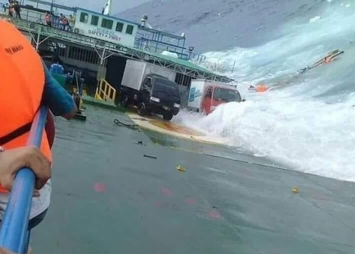 Decenas de pasajeros con chalecos salvavidas y sentados sobre la cubierta inclinada del barco, y algunos desde el agua, esperaron el rescate mientras la embarcación se sumerge, según imágenes divulgadas por la Agencia Nacional de Gestión de Desastres.
