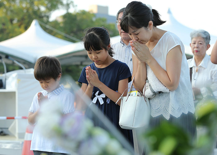 En el acto, que incluyó un momento de silencio a la misma hora en la que cayó la bomba en Hiroshima hace 73 años, el primer ministro japonés, Shinzo Abe, pidió redoblar los esfuerzos globales para conseguir un mundo sin armas atómicas.