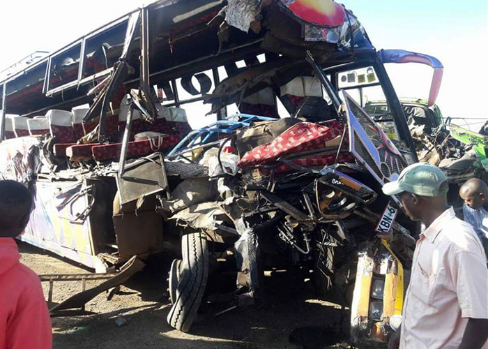 Según el jefe de la Policía de Gilgil, Emmanuel Opuru, el autobús intentaba adelantar a otro vehículo cuando colisionó contra un camión que venía en la dirección opuesta.
