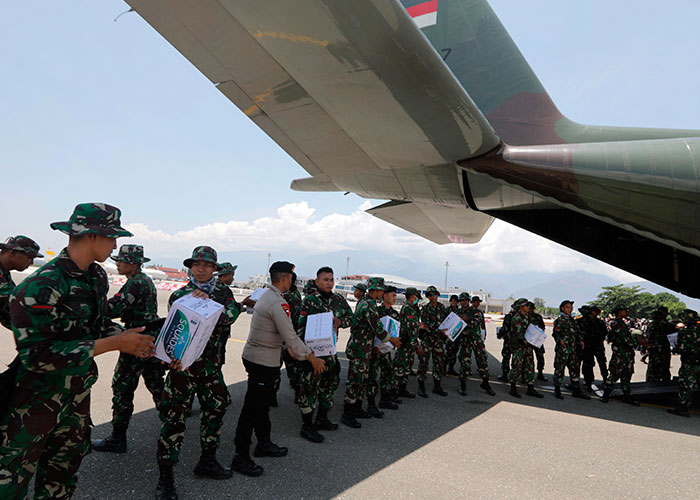 El equipo de asistencia para desastres naturales de las tropas niponas partió hoy mismo hacia Célebes con la misión de proveer a los afectados de bienes de emergencia como tiendas de campaña, purificadores de agua y generadores eléctricos.