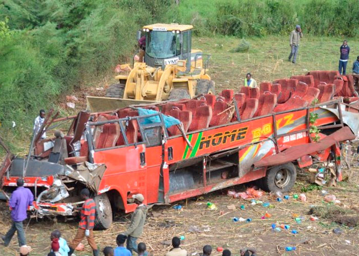 Al menos 55 personas murieron y 12 resultaron heridas en un accidente de autobús ocurrido esta madrugada en el oeste Kenia, confirmaron hoy fuentes policiales a los medios locales.