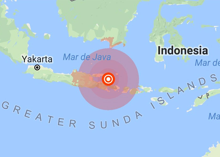 El sismo se produjo a las 18H44 GMT al noreste de la punta oriental de Java, a unos 40 km de la isla, y a una profundidad de 10,3 km, según el USGS. Se sintió en Denpasar, capital de Bali, isla muy frecuentada por turistas.