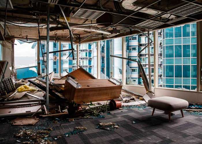 El edificio enterrado en barro era la sede de Departamento provincial de Obra Pública, donde decenas de personas se refugiaron de las intensas lluvias y fuertes vientos del Yutu, a pesar de no ser habilitado como un centro de evacuación.