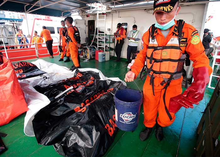 Hasta el momento, se han llevado al tanatorio 56 bolsas con restos humanos que se cree pertenecen a una decena de personas, según la agencia de búsqueda y rescate Basarnas.