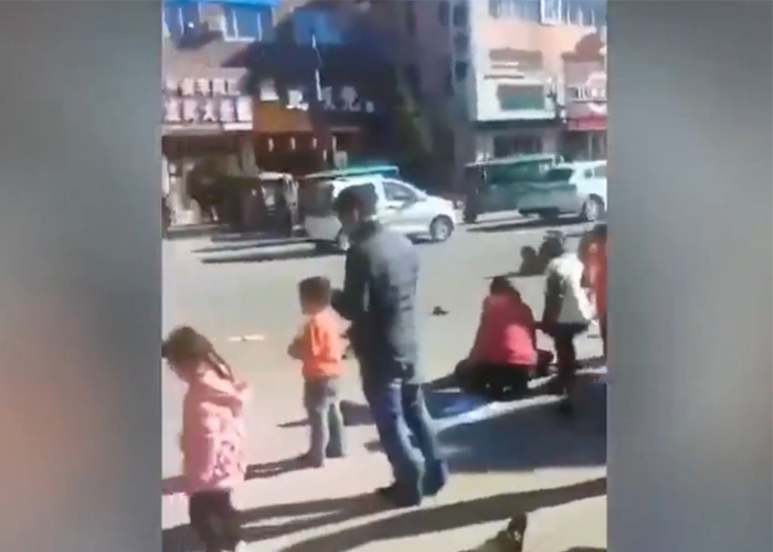 Algunos vídeos no autentificados que circulan en las redes sociales muestran un auto cambiando bruscamente de carril y embistiendo a un grupo de niños que cruzan la calle, varios de los cuales quedan tendidos en el suelo tras el impacto.
