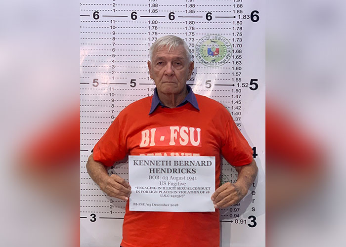 Un tribunal de Ohio había emitido una orden de arresto contra Hendricks, de 77 años y que llevaba 37 viviendo en Filipinas, apuntó Sandoval, añadiendo que el caso iniciado en Estados Unidos partió de las quejas presentadas por las supuestas víctimas filipinas.