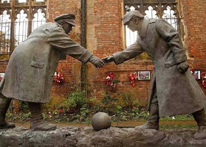 Esta tregua quedó simbolizada a través de un par de esculturas, una en Gran Bretaña , la que eterniza a dos soldados, uno inglés y otro alemán y en el medio, una pelota de fútbol. Se llama "All together now" y es obra de Andy Edwards de Stoke. Y otra fue inaugurada en Bélgica cuando se cumplió el centenario del inicio de la Gran Guerra.