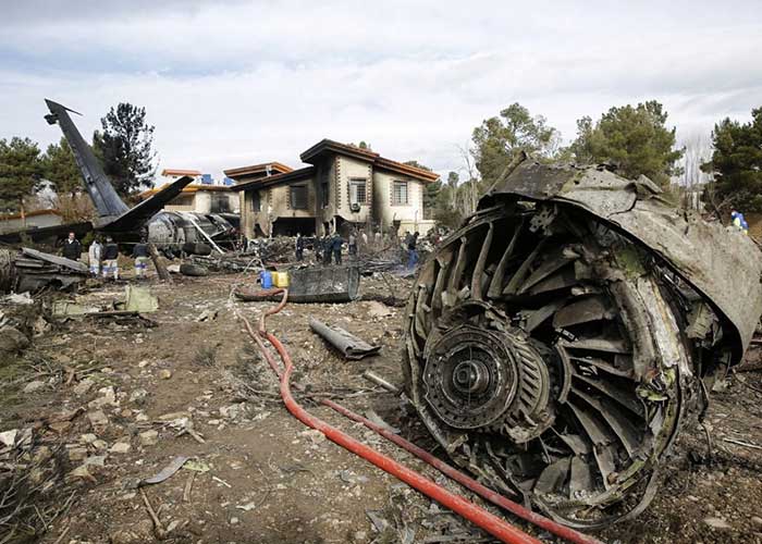 La televisora estatal iraní emitió imágenes de viviendas carbonizadas y del fuselaje de la aeronave en el vecindario. Además podía verse parte del tren de aterrizaje destrozado y pequeños fuegos en las inmediaciones.
