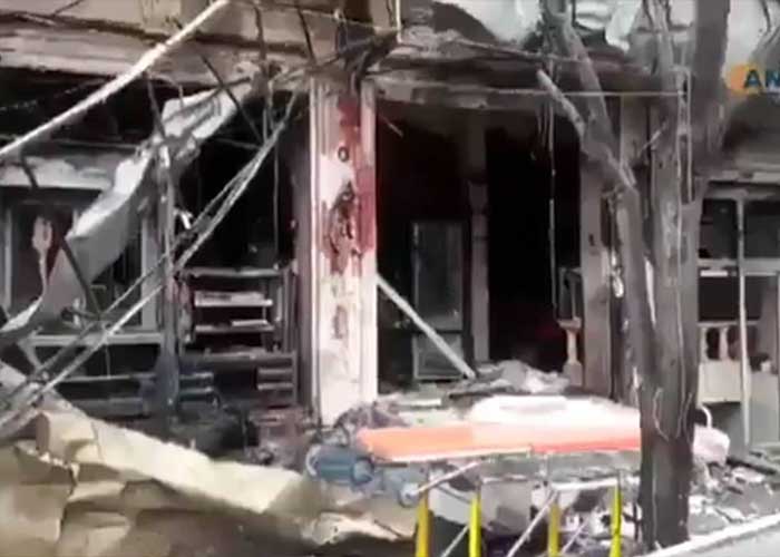 Videos distribuidos por activistas y agencias noticiosas locales mostraron un restaurante que sufrió graves daños y una calle cubierta de escombros y sangre. Otro video mostró un helicóptero sobrevolando el lugar.