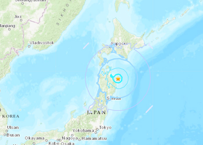 El terremoto se registró a las 17.23 hora local (8.23 GMT) a 30 kilómetros de profundidad y a unos 50 kilómetros de la costa de la ciudad portuaria de Kuji, en la provincia de Iwate, en el nordeste del país, informó la Agencia Meteorológica (JMA).