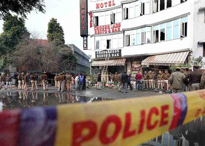 El jefe de bomberos de la capital india indicó a los medios de comunicación que el fuego arrasó el último piso del Hotel Arpit Palace, situado en un barrio céntrico de la ciudad.