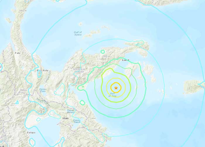 Gempa 6,9 SR berpusat di 85 km barat daya Banggai Sulteng. BMKG melaporkan gemppa berpotensi di Kab Morowali dengan status Waspada.