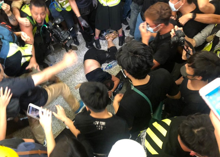 Como respuesta la policía de Hong Kong intenta a quienes se tomaron el terminal aéreo con gas pimienta y bastones, registrándose duros enfrentamientos entre ambas partes, informó La Tercera.