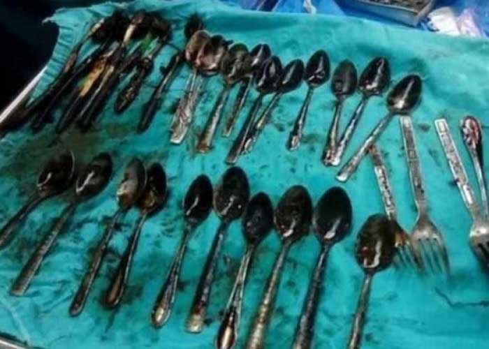 Finalmente, el joven fue llevado al hospital, donde se le practicaron varias pruebas en las que terminaron detectando que se había tragado 20 cucharas, 4 tenedores, 7 cepillos de dientes, un anillo y una cadena.