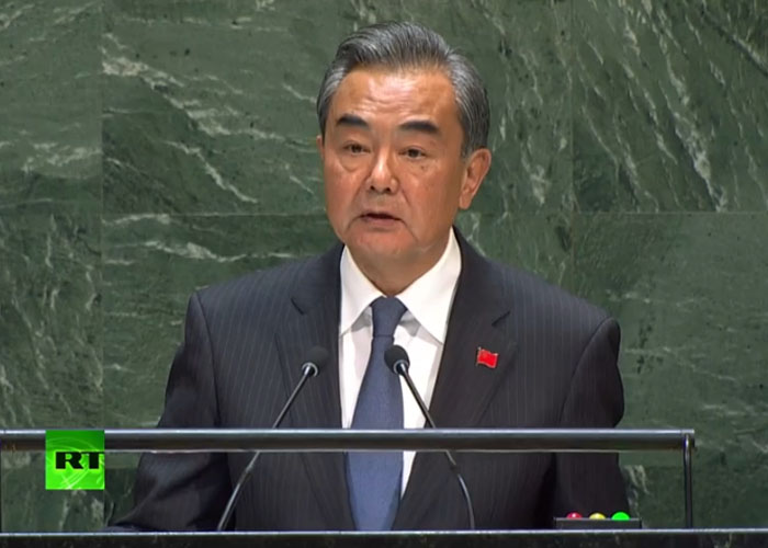 El ministro de Exteriores de China, Wang Yi, interviene este viernes en la 74.ª sesión de la Asamblea General de la Organización de las Naciones Unidas en Nueva York.