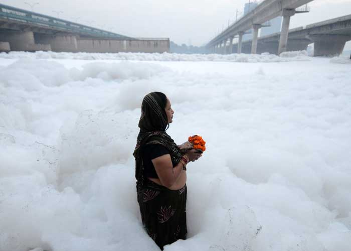 Hace unos días, residentes del lugar, como parte de un ritual que realizan año con año, se sumergieron en el Yamuna, donde encontraron una espuma tóxica. Esta celebración llamada “Chhath Puja” tiene 4 días de duración, en los cuales los pobladores tuvieron que soportar estar en el área contaminada.