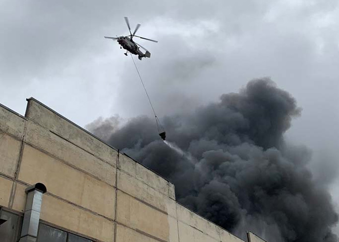 Se informa también del derrumbe de un techo sobre un área de 300 metros cuadrados en el edificio en llamas.