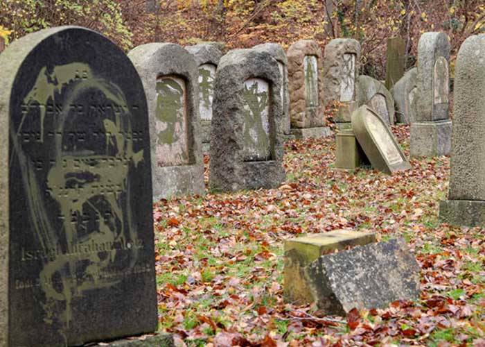 Un testigo había alertado a los investigadores después de haber visto a dos personas encapuchadas y con ropa oscura derribar más de 40 lápidas y rociar algunas con pintura azul la madrugada del lunes, "poco antes" de las 03H00 hora local.