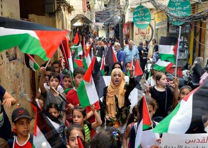Multitudes de refugiados palestinos marcharon en los campos de refugiados de Ein al-Hilweh y Beddawi, donde se extendió la huelga general.