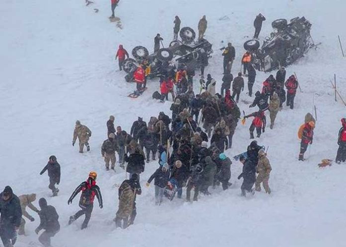 Ocho personas habían sido liberadas con vida del vehículo sepultado, al tiempo que se recuperaron cinco cadáveres, pero esta mañana, los equipos seguían buscando a dos desaparecidos, cuando sobrevino el segundo y letal alud.