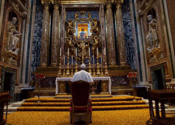 Este domingo por la tarde el Papa Francisco salió del Vaticano para rezar por el fin de la epidemia del coronavirus en la Basílica de Santa María la Mayor y la iglesia de San Marcelo, ante la famosa imagen del Cristo milagroso que salvó a Roma de la peste.