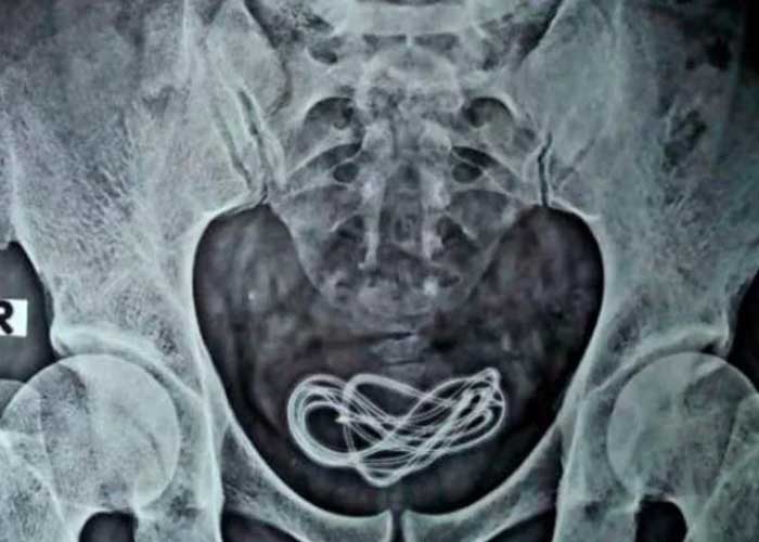 Según La República, una radiografía mostró a los médicos el verdadero motivo de los dolores: había un cable de cargador dentro de la vejiga del individuo, el cual llegó allí a través de la uretra que conecta dicho órgano con el pene. El objeto, de 60 centímetros de largo, fue retirado mediante una incisión.