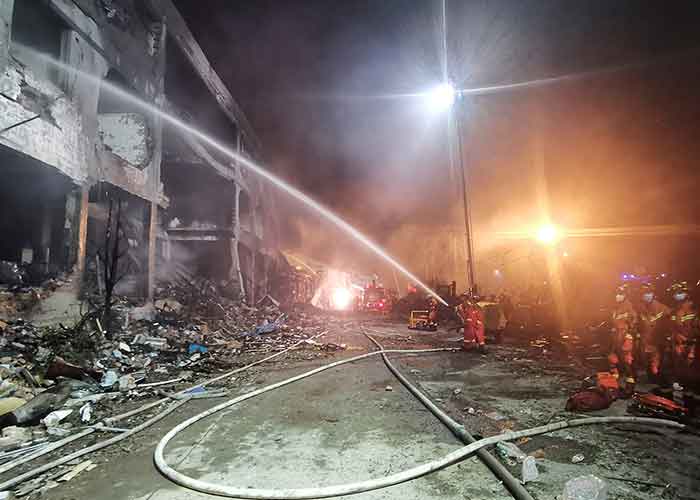 Al menos 138 efectivos y 34 camiones de bomberos locales acudieron al lugar y otros 316 agentes han sido llamados para colaborar en las labores de rescate, según el Ministerio de Gestión de Emergencias chino.