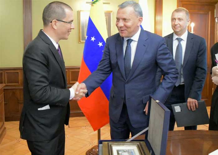 El ministro de Relaciones Exteriores de Venezuela, Jorge Arreaza, y el vice primer ministro de Rusia, Yuri Borísov, dialogaron sobre el fortalecimiento de la cooperación económica y comercial bilateral, informó la cancillería del país suramericano.