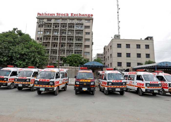 Los asaltantes estaban armados con granadas y rifles automáticos, dijo la policía. Comenzaron el ataque abriendo fuego a la entrada de la Bolsa de Pakistán en la ciudad portuaria sureña, el centro financiero del país.