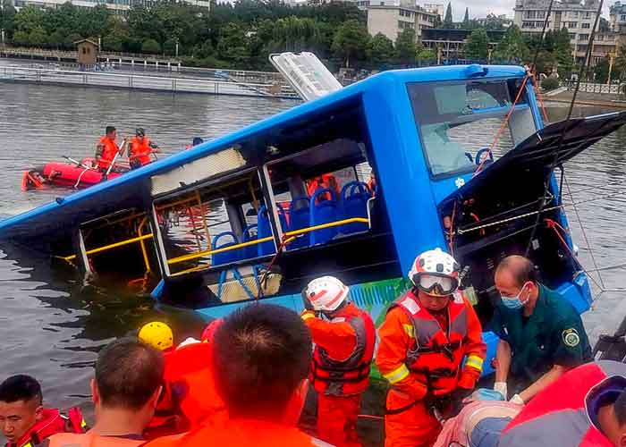 Al menos 21 personas murieron y otras 15 resultaron heridas después de que un autobús que transportaba estudiantes cayera a un embalse en la provincia de Guizhou, ubicada al suroeste de China https://t.co/39AeGJOARf pic.twitter.com/RtqHZaEKU5