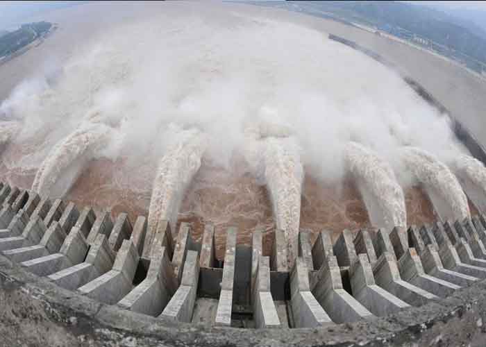 La enorme Presa de las Tres Gargantas, en el Yangtsé, abrió tres compuertas la semana pasada después de que el nivel del agua embalsada subiera más de 15 metros (50 pies) por encima de los niveles de inundación. Se esperaba que el martes llegara otra oleada de agua de crecidas a la presa.