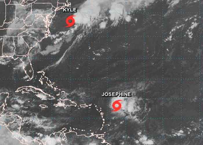 La tormenta tropical Josephine avanza hacia el noroeste del Atlántico cerca de las Islas Barlovento sin representar amenaza para la región caribeña, mientras que Kyle se aleja de la costa noreste de Estados Unidos, donde se formó el viernes, informó este sábado el Centro Nacional de huracanes (NHC).