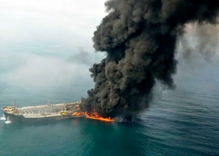 Un petrolero con bandera panameña, cargado con más de 270.000 toneladas de crudo, estaba este viernes en llamas frente a las costas de Sri Lanka, por segundo día consecutivo, agravando los temores de marea negra de grandes proporciones en el océano Índico.