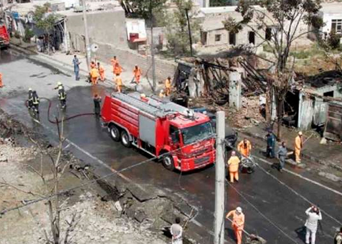 Imágenes divulgadas por las autoridades locales mostraron un gran cráter en el lugar de la explosión y las fachadas de varias edificaciones destruidas.