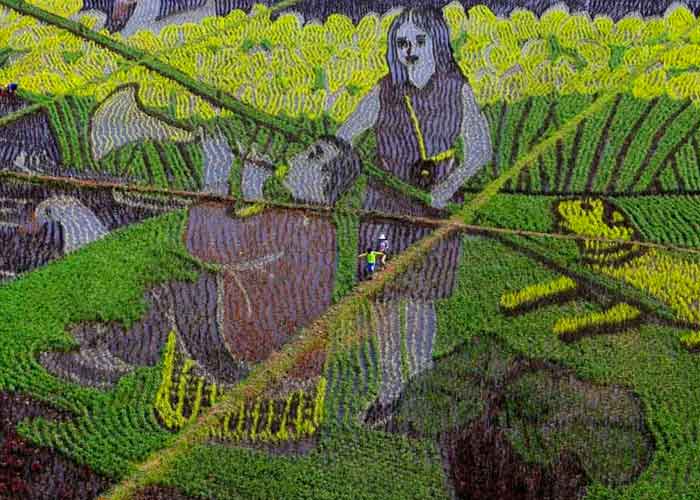 Estos dibujos, invisibles desde el suelo, son fruto de un proyecto realizado por agricultores y niños cerca de la ciudad de Suncheon, a 320 kilómetros al sur de Seúl.