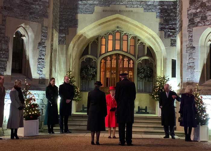 La monarca de 94 años, quien vistió un traje rojo, fue acompañada en la ocasión por su hijo mayor, el príncipe Carlos, y su esposa Camila, su hija la princesa Ana y su hijo menor, el príncipe Eduardo, en una de las pocas veces en que la familia real ha aparecido junta en público desde el inicio de la pandemia de coronavirus.
